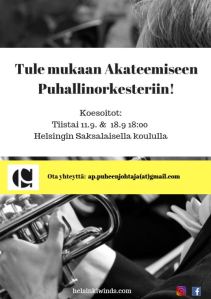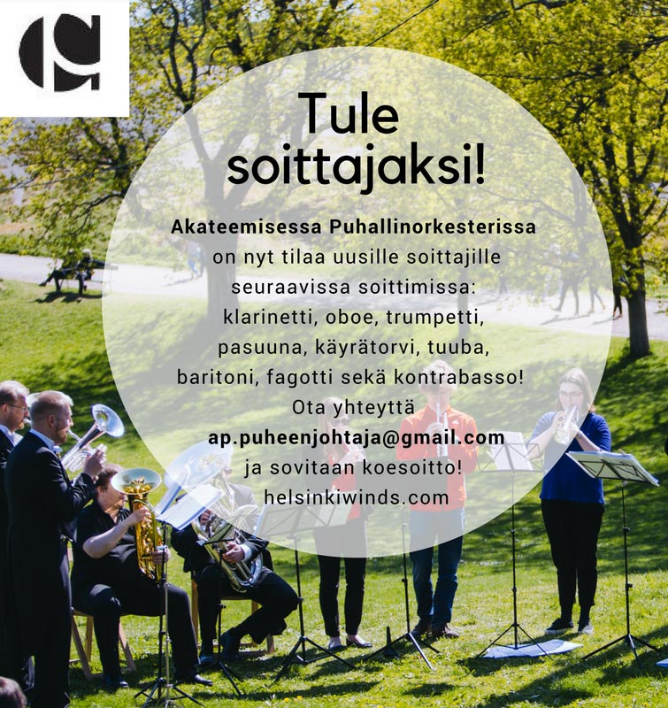 Akateeminen puhallinorkesteri (Helsinki Symphonic Winds) is looking for new players! At the moment there’s need especially for the following instruments: