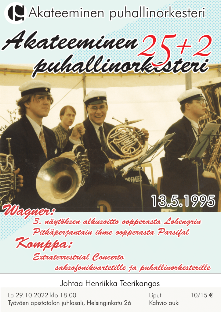 Tervetuloa Akateemisen Puhallinorkesterin juhlakonserttiin! Juhlistamme 30-vuotista taivaltamme erityisen musiikki-illan merkeissä lauantaina 22.11.2025 klo 18.30 Temppeliaukion kirkossa.