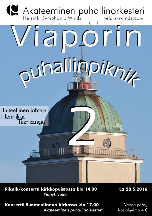 Viaporin puhallinpiknikin avasi italialaisen musiikin konsertti Suomenlinnan kirkossa, jossa orkesterimme kamarikokoonpano esitti teoksia Verdistä Vivaldiin. Kirkkokonsertin jälkeen siirryimme piknikille Susisaaren Isopeltoon, jossa nautimme orkesterimme pienyhtyeiden esityksistä auringonpaisteessa. Piknikillä esiintyivät A-Seitsikko, klarinettikvartetti, saksofoniyhtye, huilutrio sekä kolmen huilun, kitaran ja tuuban muodostama yhtye.